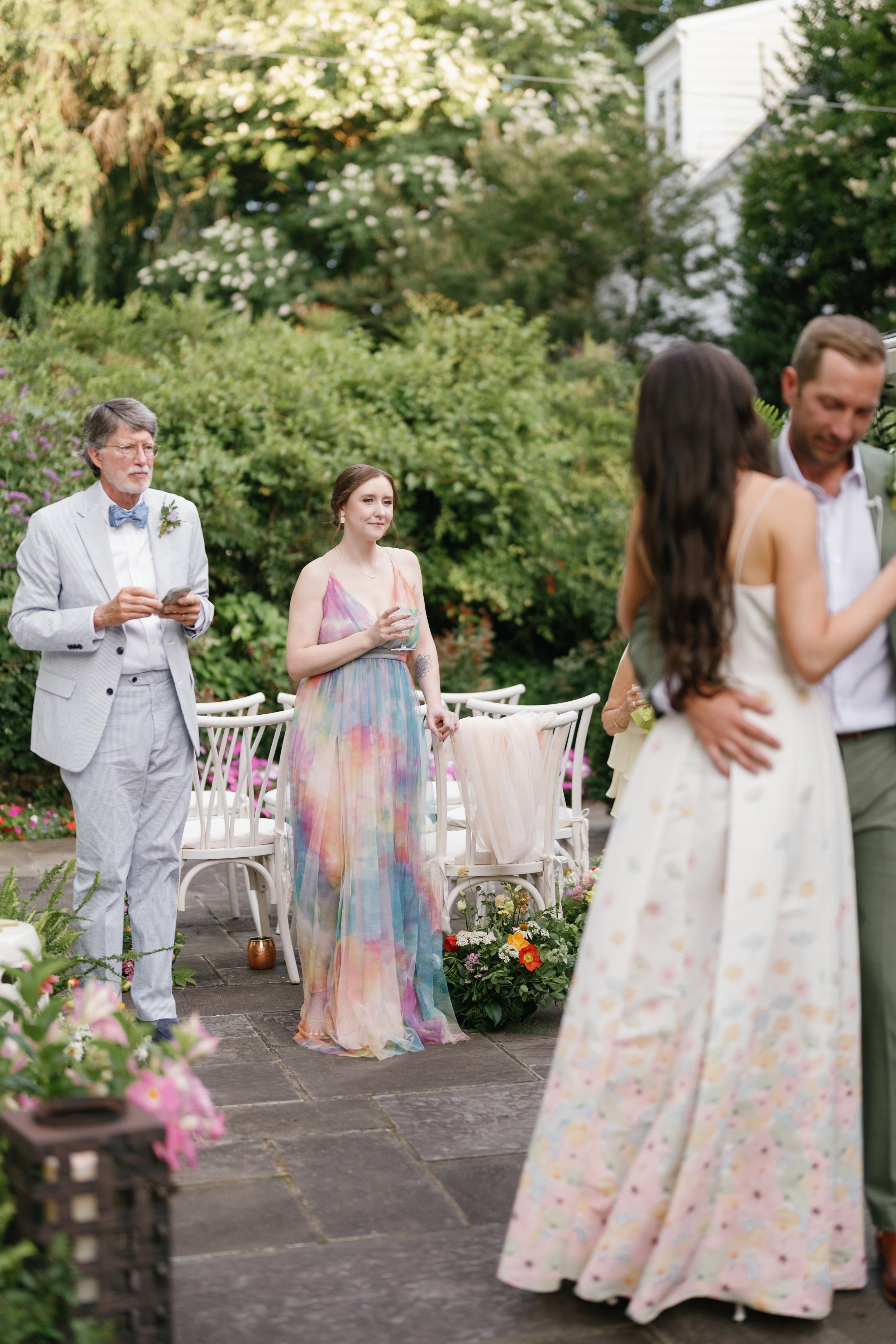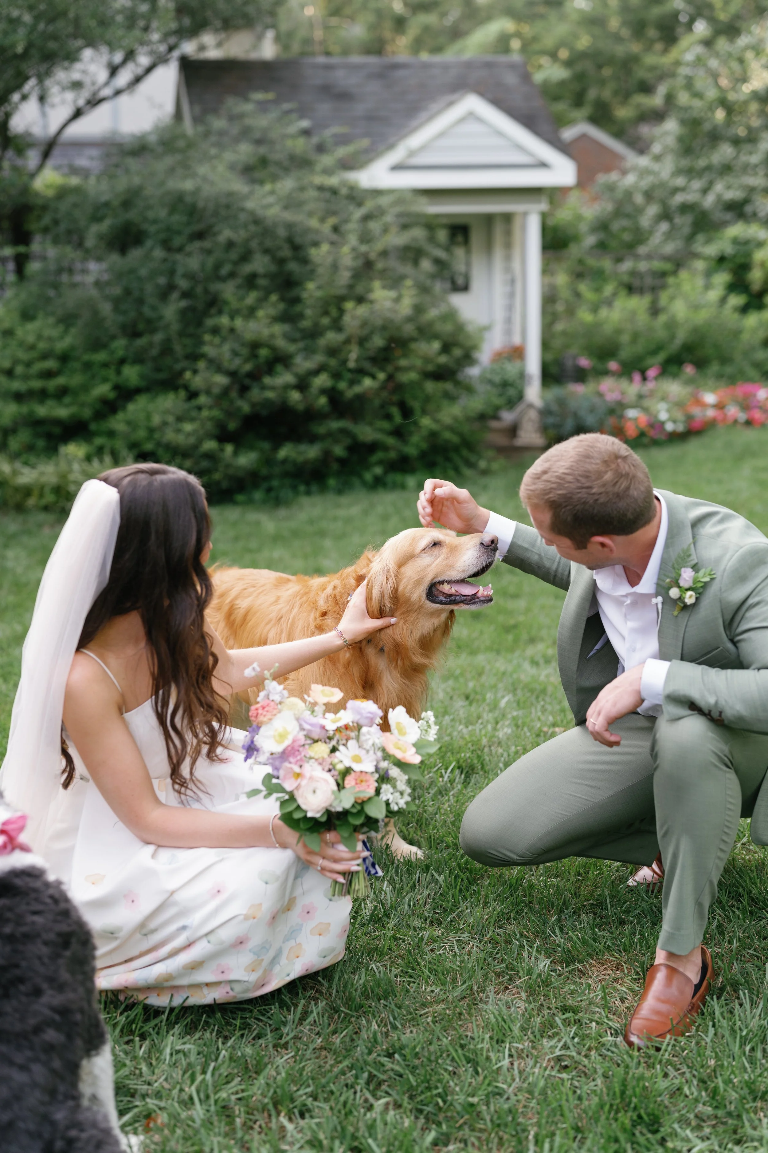 We shared private first dances. We had extra time for family photos without feeling rushed. My dogs wandered freely through the backyard, popping in and out of moments like they belonged there—because they did.